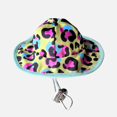 Capelina modelo pétalo con vuelo. Diseñada y fabricada especificamente para galgos, es ideal para mantener su cabeza a salvo de la radiación solar. Confeccionada con tela filtro solar UV + 50 certificada.